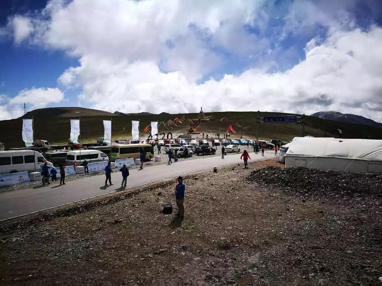 結束了坡道測試,車隊一路繼續向上爬升。在經過多處“云里飛車”的險峻山路后,終于到達全賽程最高點——海拔4120米的大冬樹山埡口。